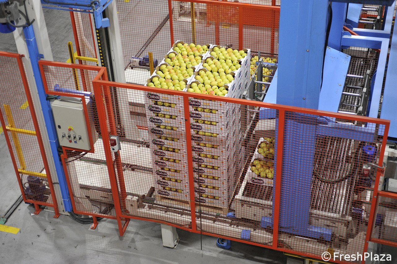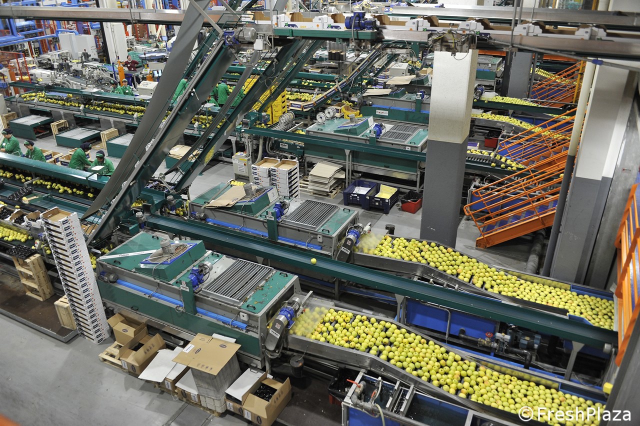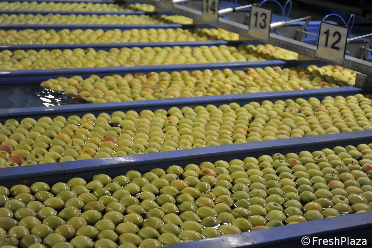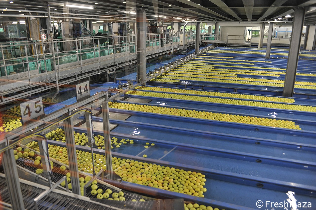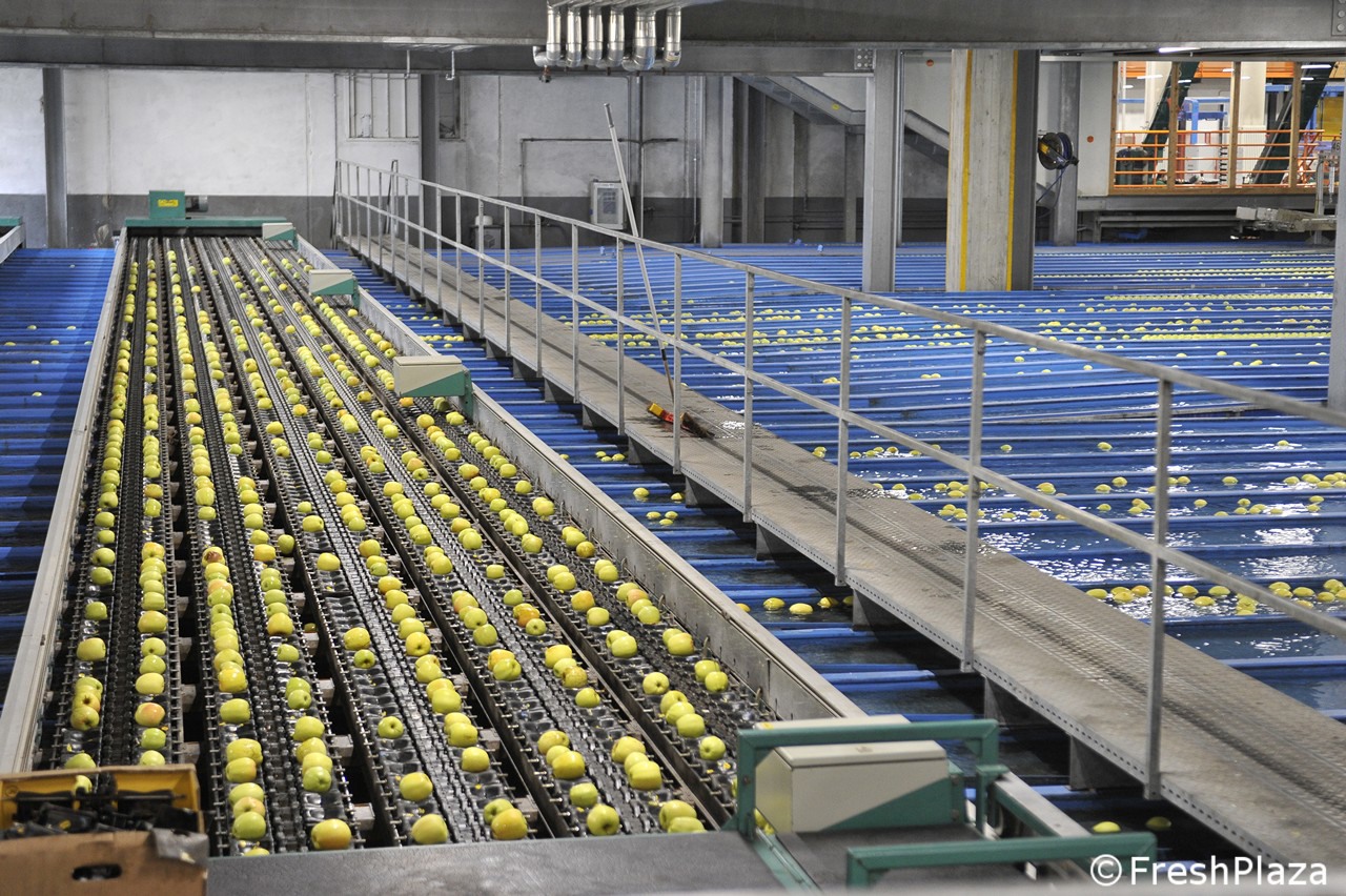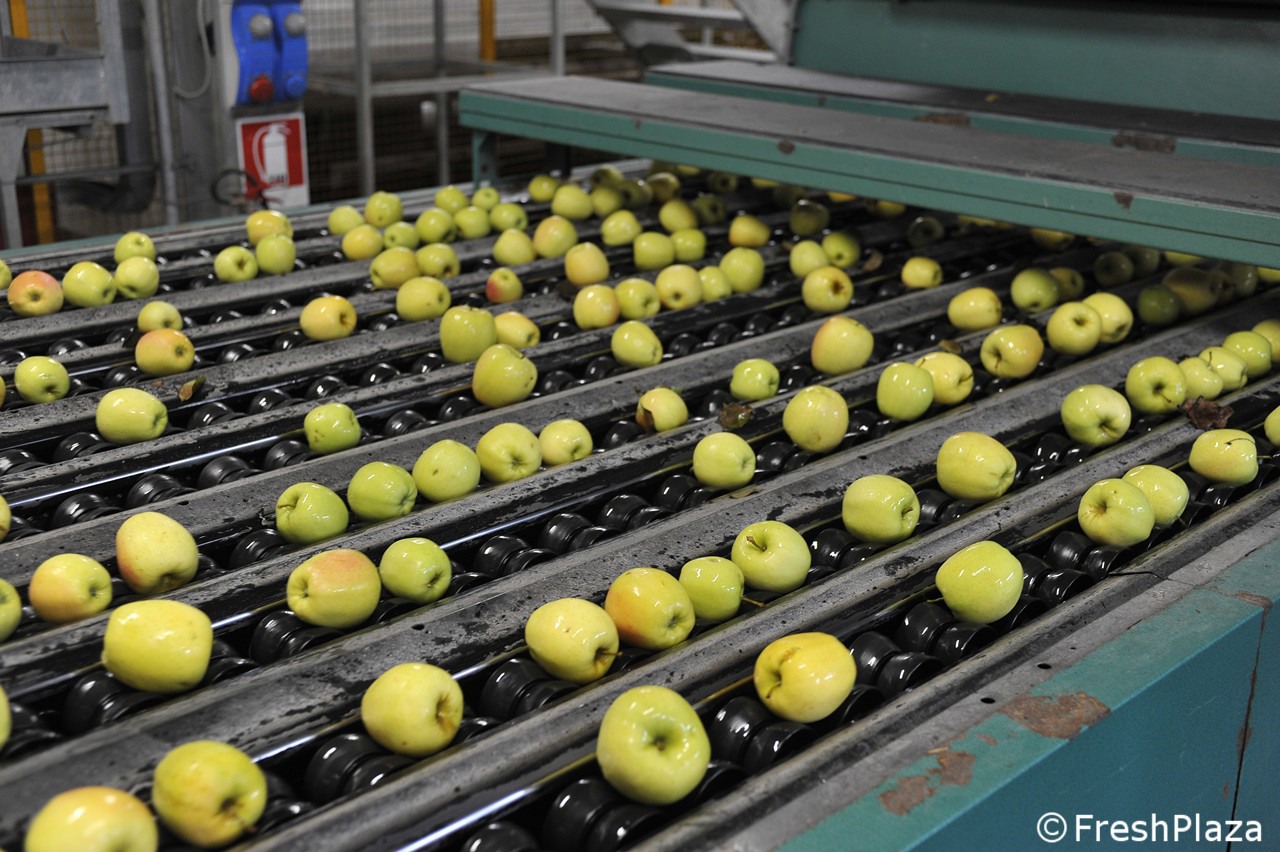 Una delle corsie con le mele selezionate per calibro