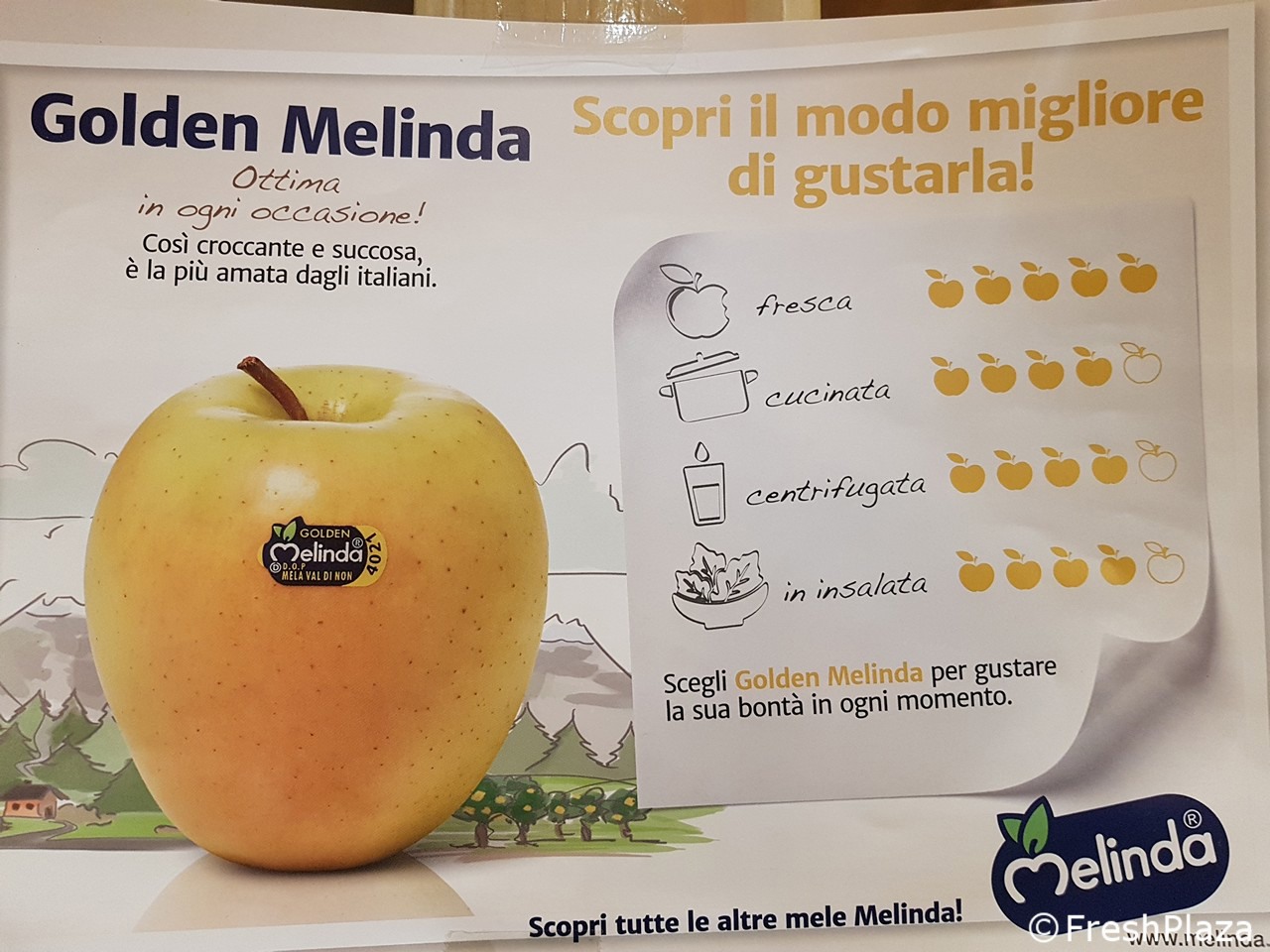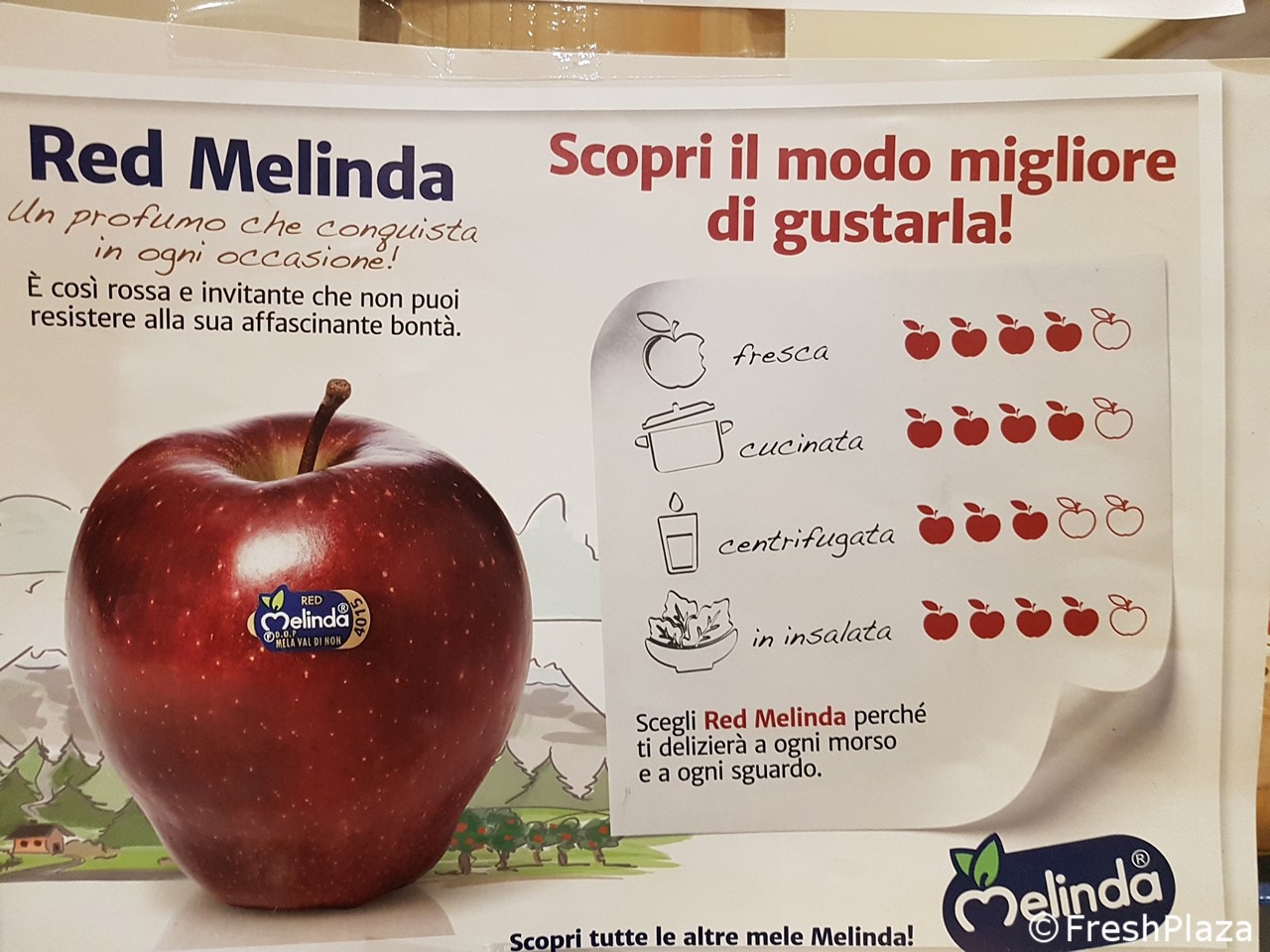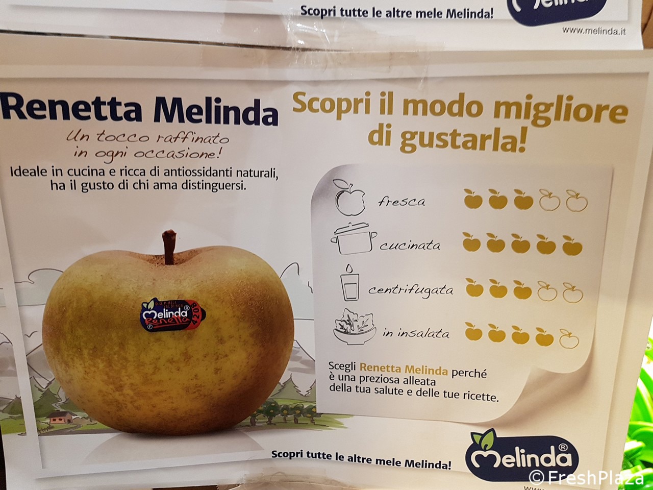 Pannelli esplicativi che aiutano il consumatore nella scelta della mela più adatta