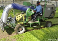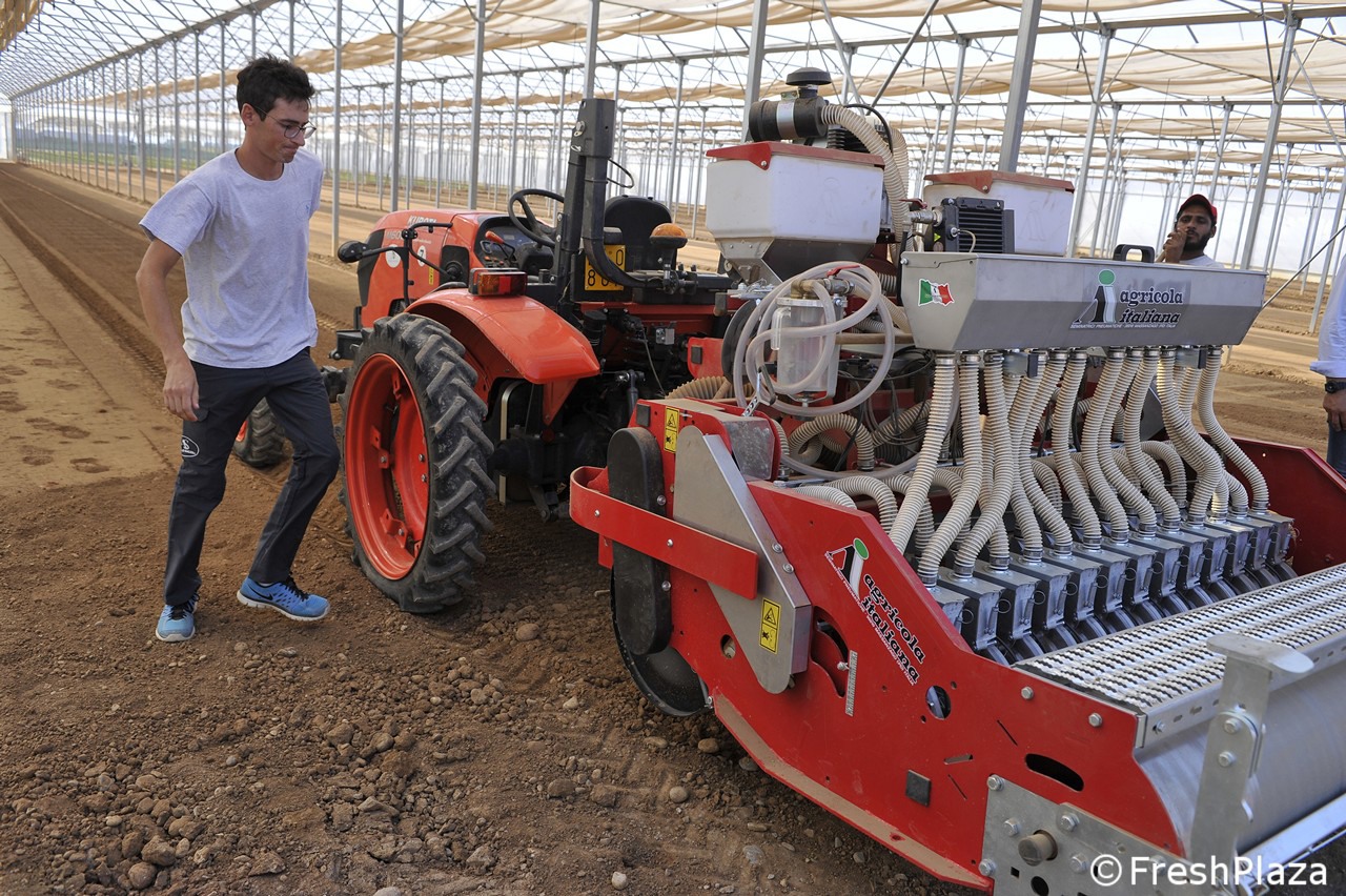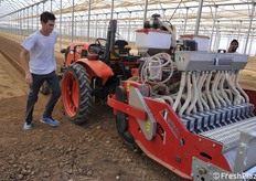 I fratelli Salera, Marco e Nicola, hanno mostrato in una sola mattinata tutte le fasi che portano dalla preparazione del letto di semina alla raccolta e spedizione delle verdure di quarta gamma. Nella foto, la prima fase quella di vangatura