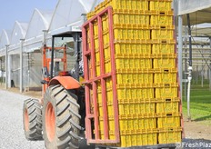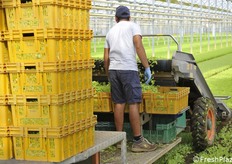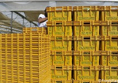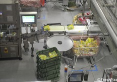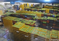 Le casse vengono portate alla cella di stoccaggio, pronte per il carico