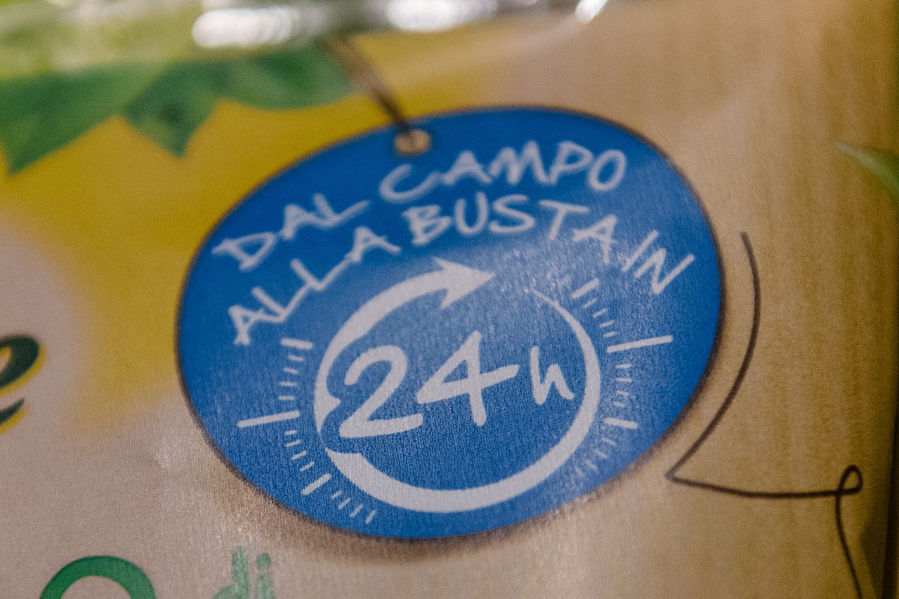 Il logo che certifica il brevissimo tempo che trascorre dalla raccolta al confezionamento e consegna in GDO