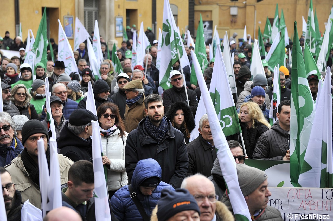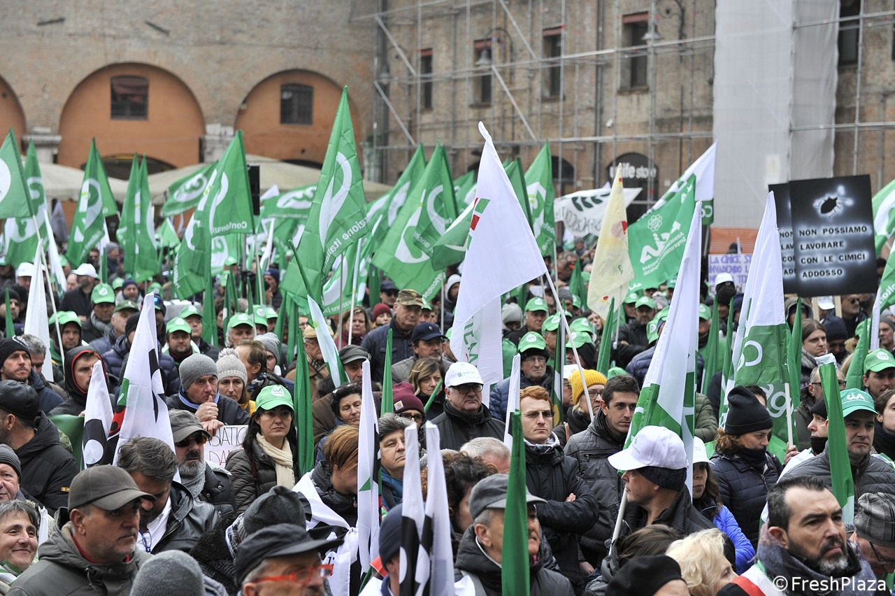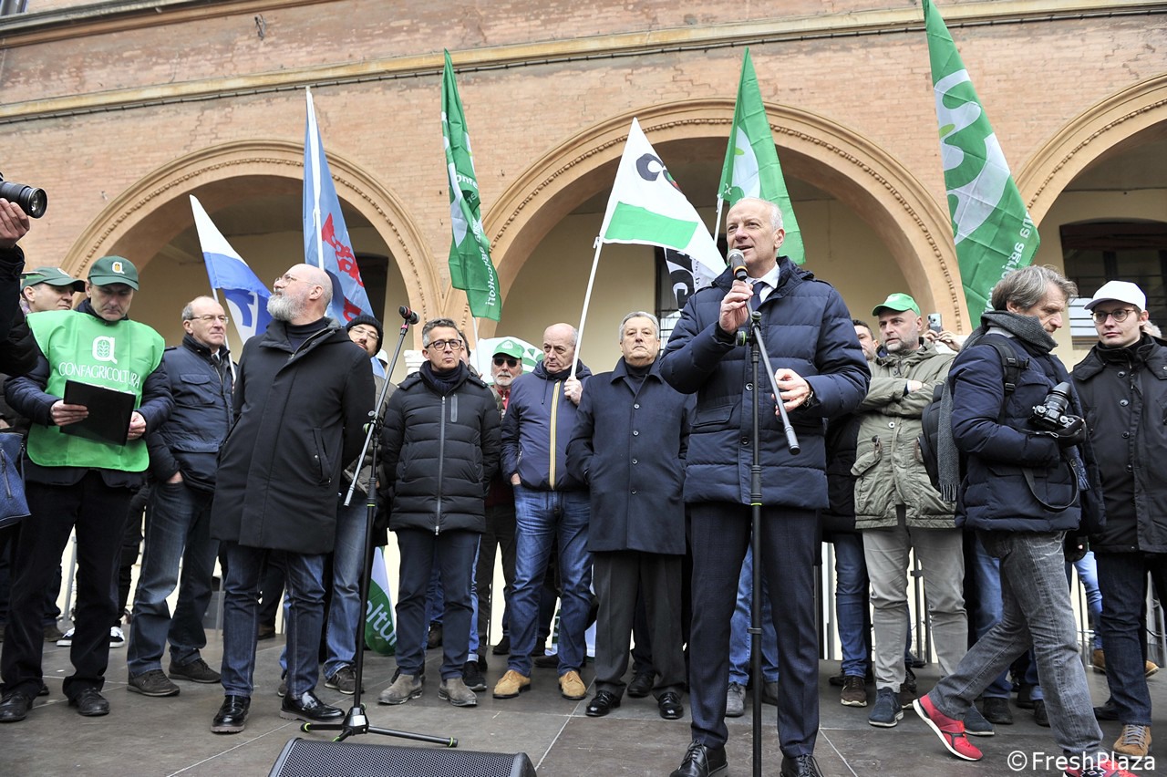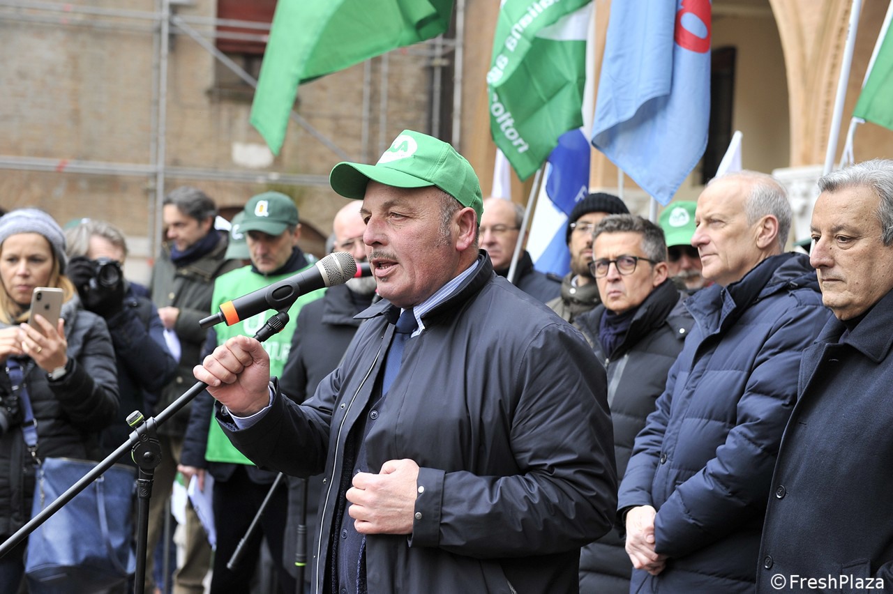 Ferrara, 30 gennaio 2020. La manifestazione per sensibilizzare sul tema della cimice asiatica, organizzata da Agrinsieme, si è svolta prima con un corteo di trattori, poi tutti i partecipanti sono confluiti in piazza (fotoservizio Cristiano Riciputi)
