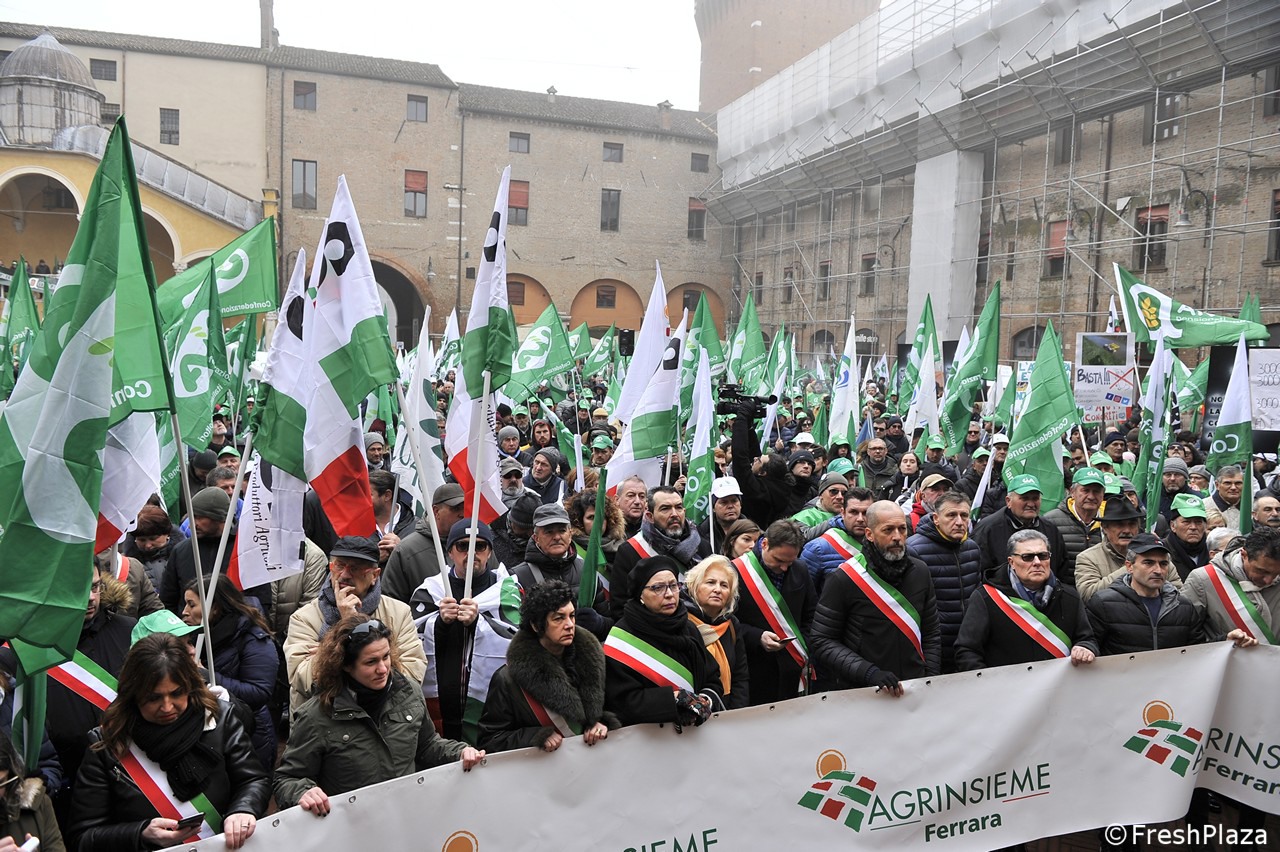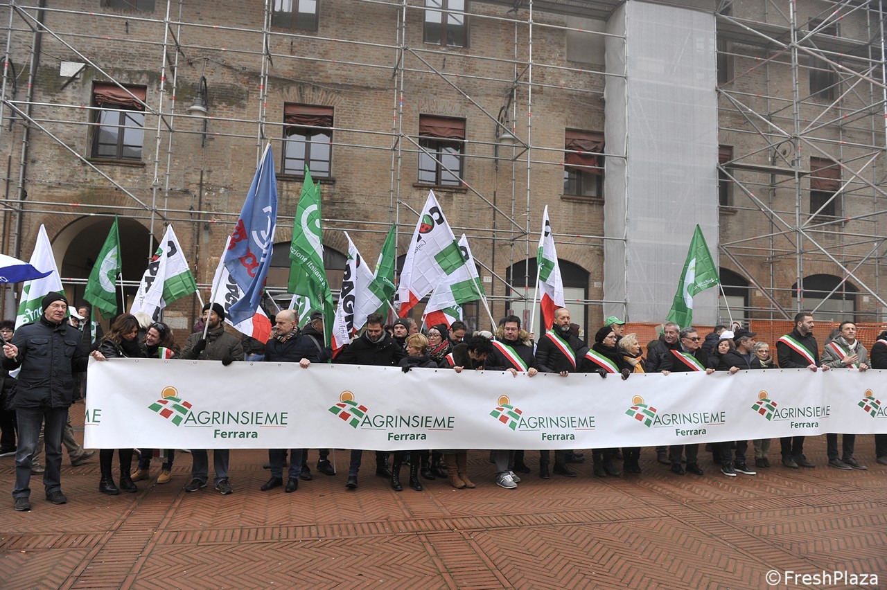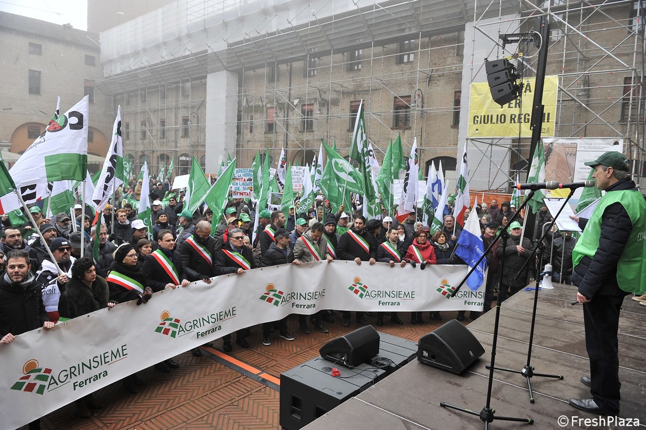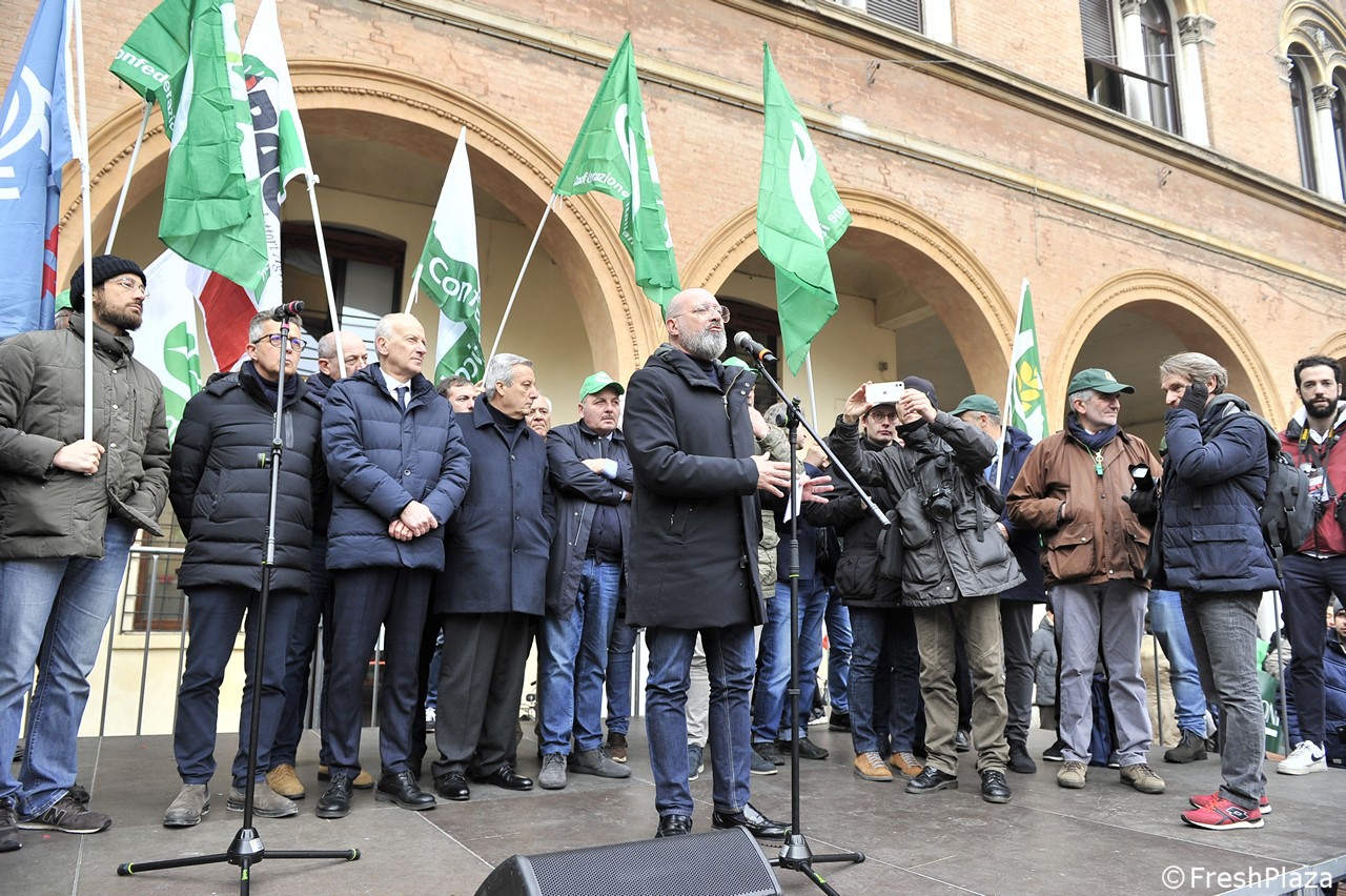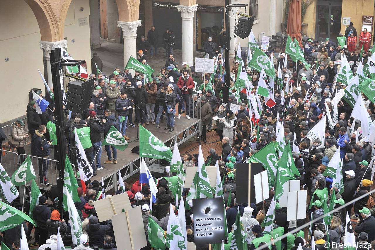 Ferrara, 30 gennaio 2020. La manifestazione per sensibilizzare sul tema della cimice asiatica, organizzata da Agrinsieme, si è svolta prima con un corteo di trattori, poi tutti i partecipanti sono confluiti in piazza (fotoservizio Cristiano Riciputi)