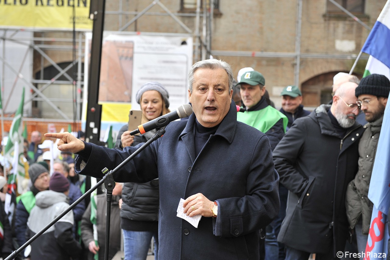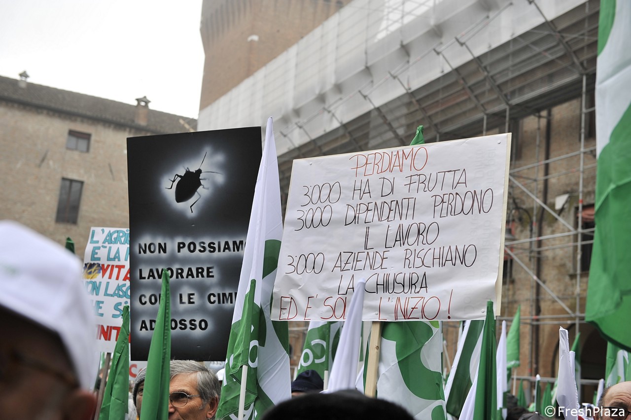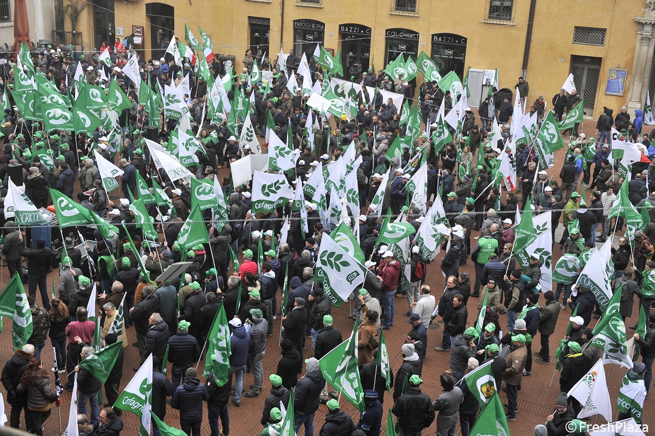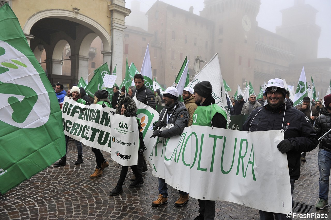 Ferrara, 30 gennaio 2020. La manifestazione per sensibilizzare sul tema della cimice asiatica, organizzata da Agrinsieme, si è svolta prima con un corteo di trattori, poi tutti i partecipanti sono confluiti in piazza (fotoservizio Cristiano Riciputi)