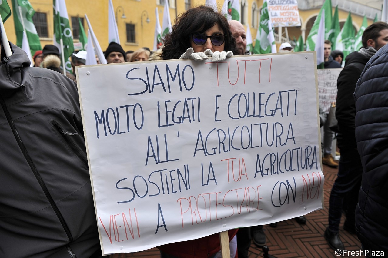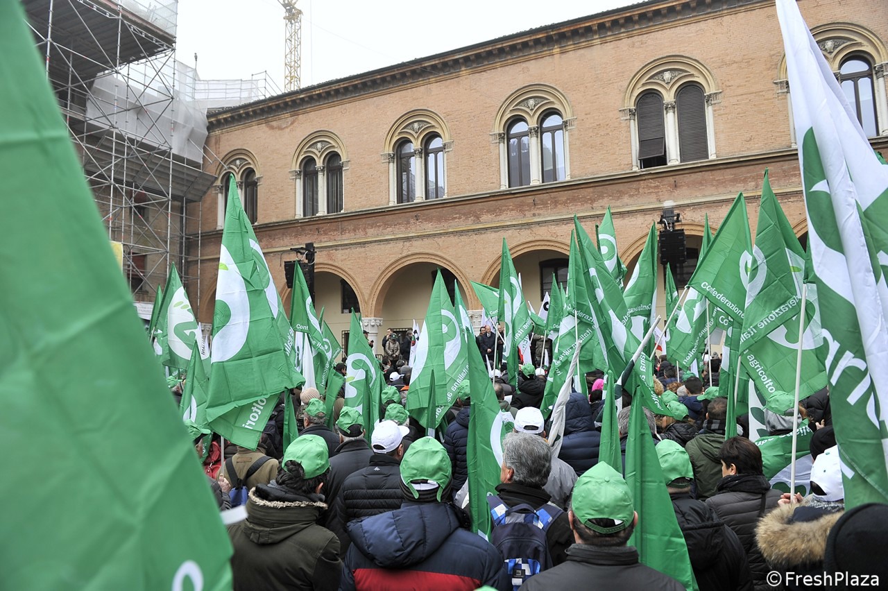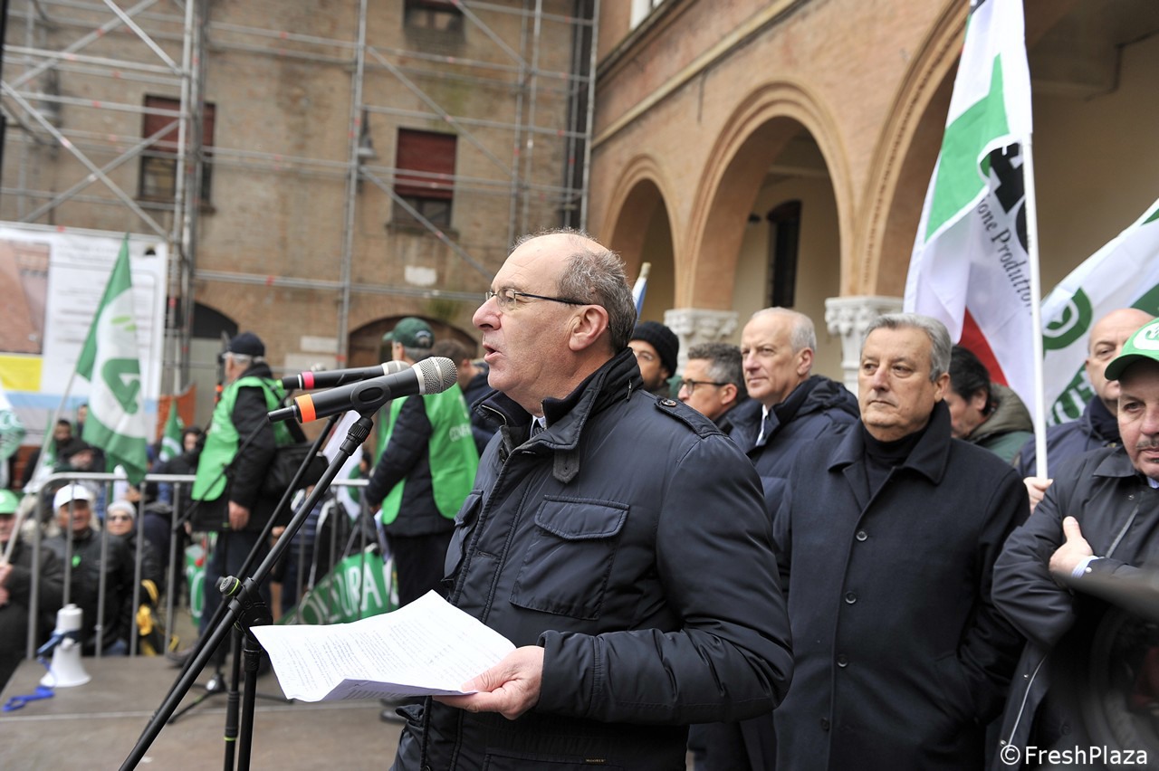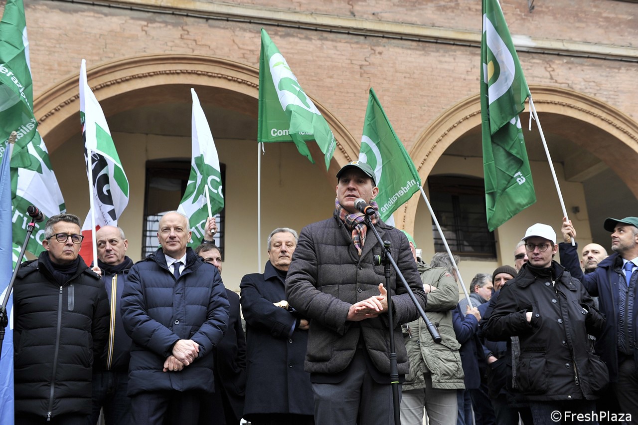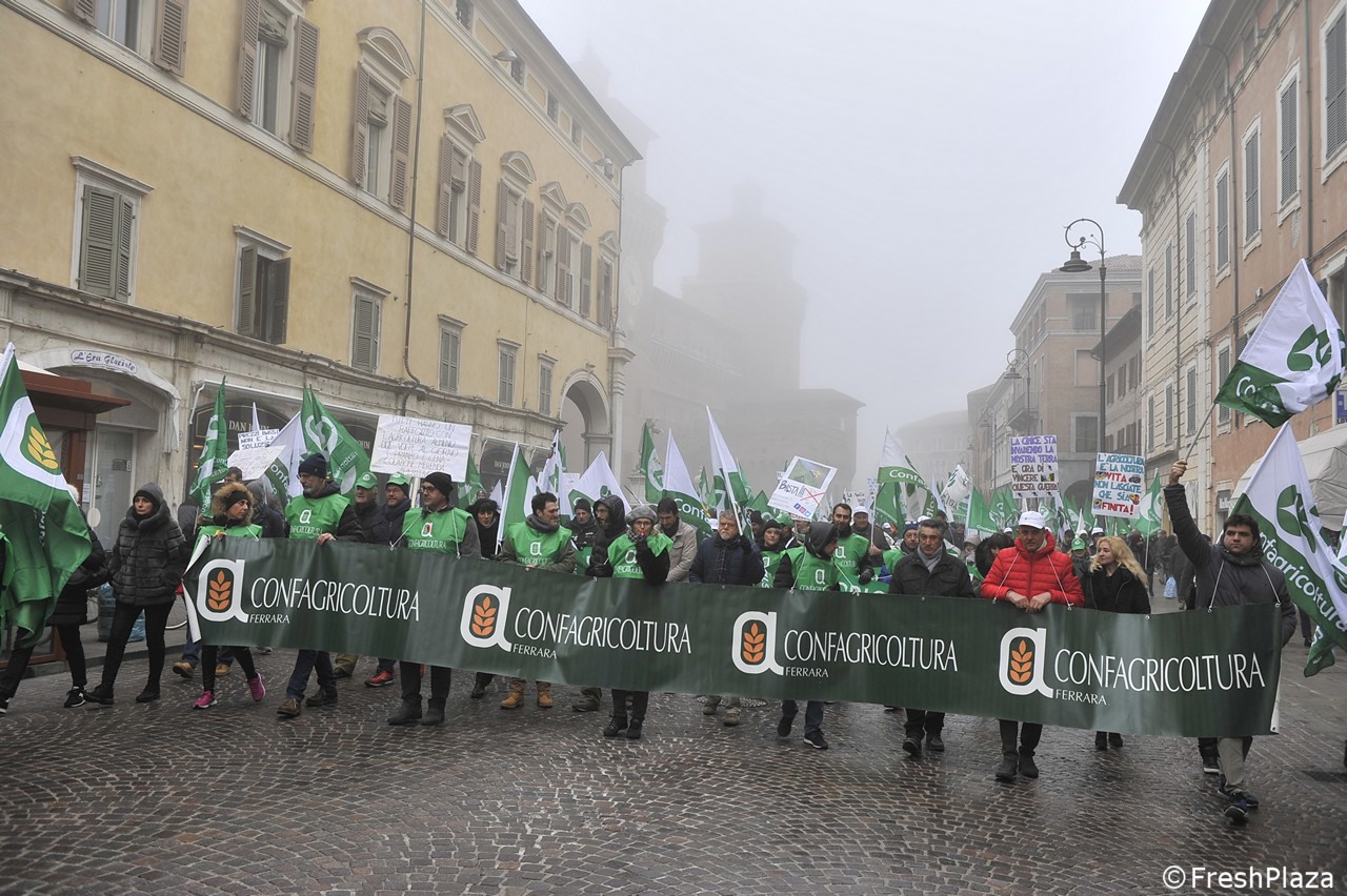 Ferrara, 30 gennaio 2020. La manifestazione per sensibilizzare sul tema della cimice asiatica, organizzata da Agrinsieme, si è svolta prima con un corteo di trattori, poi tutti i partecipanti sono confluiti in piazza (fotoservizio Cristiano Riciputi)