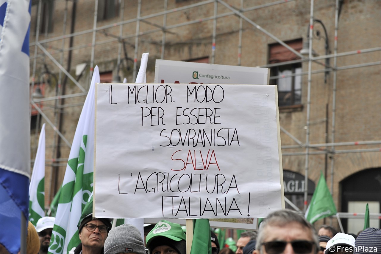 Tanti i cartelli che richiamavano a sostenere il comparto agricolo