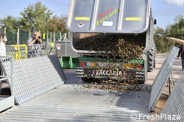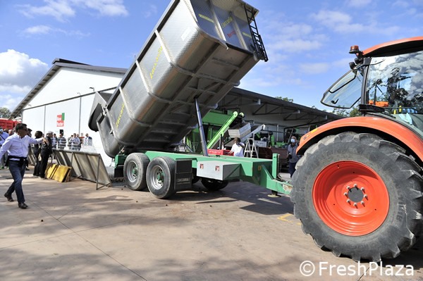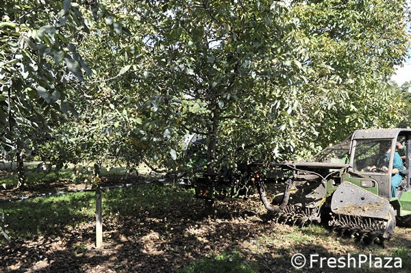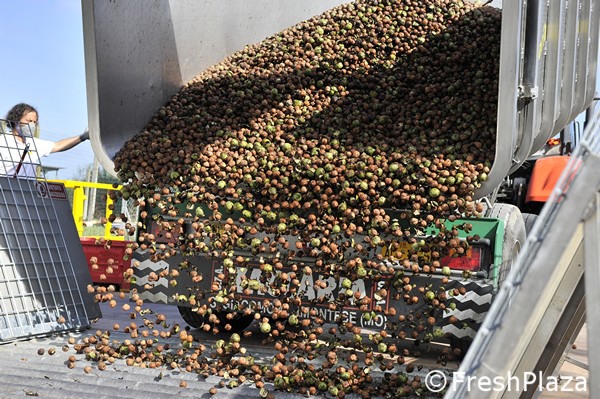 Scarico di noci nella tramoggia