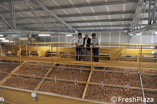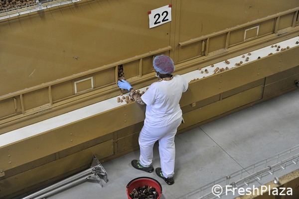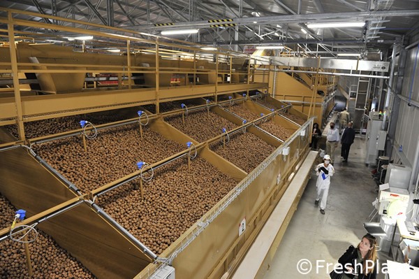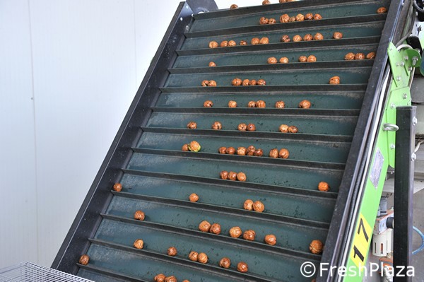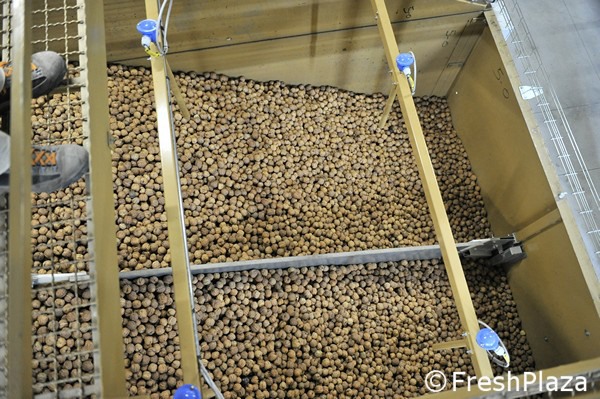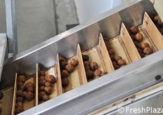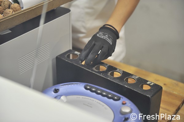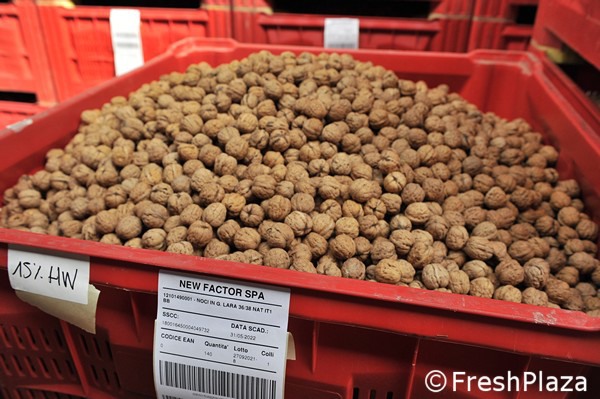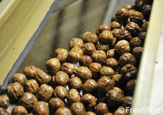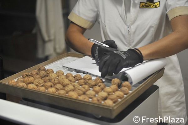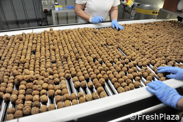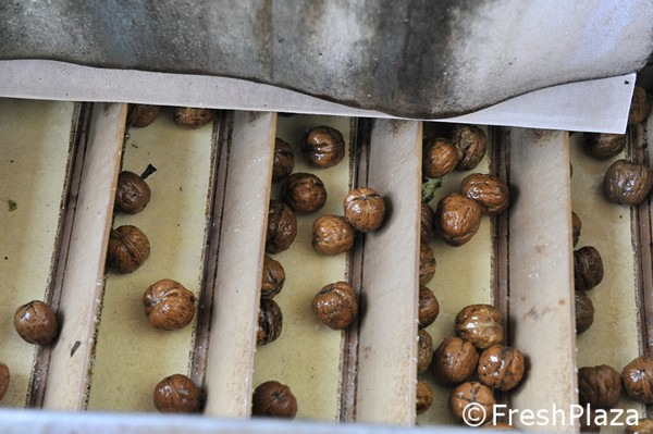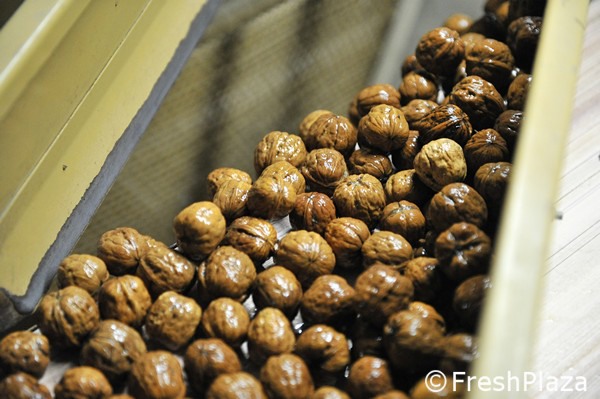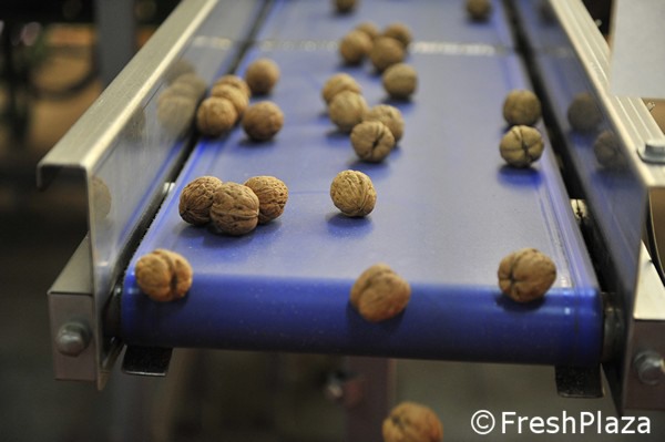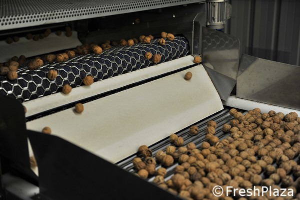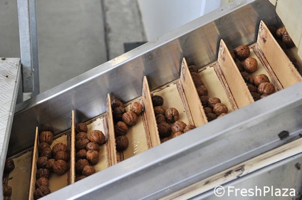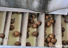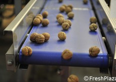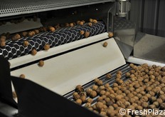 Le noci già essiccate vengono mandate in calibrazione