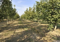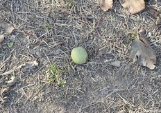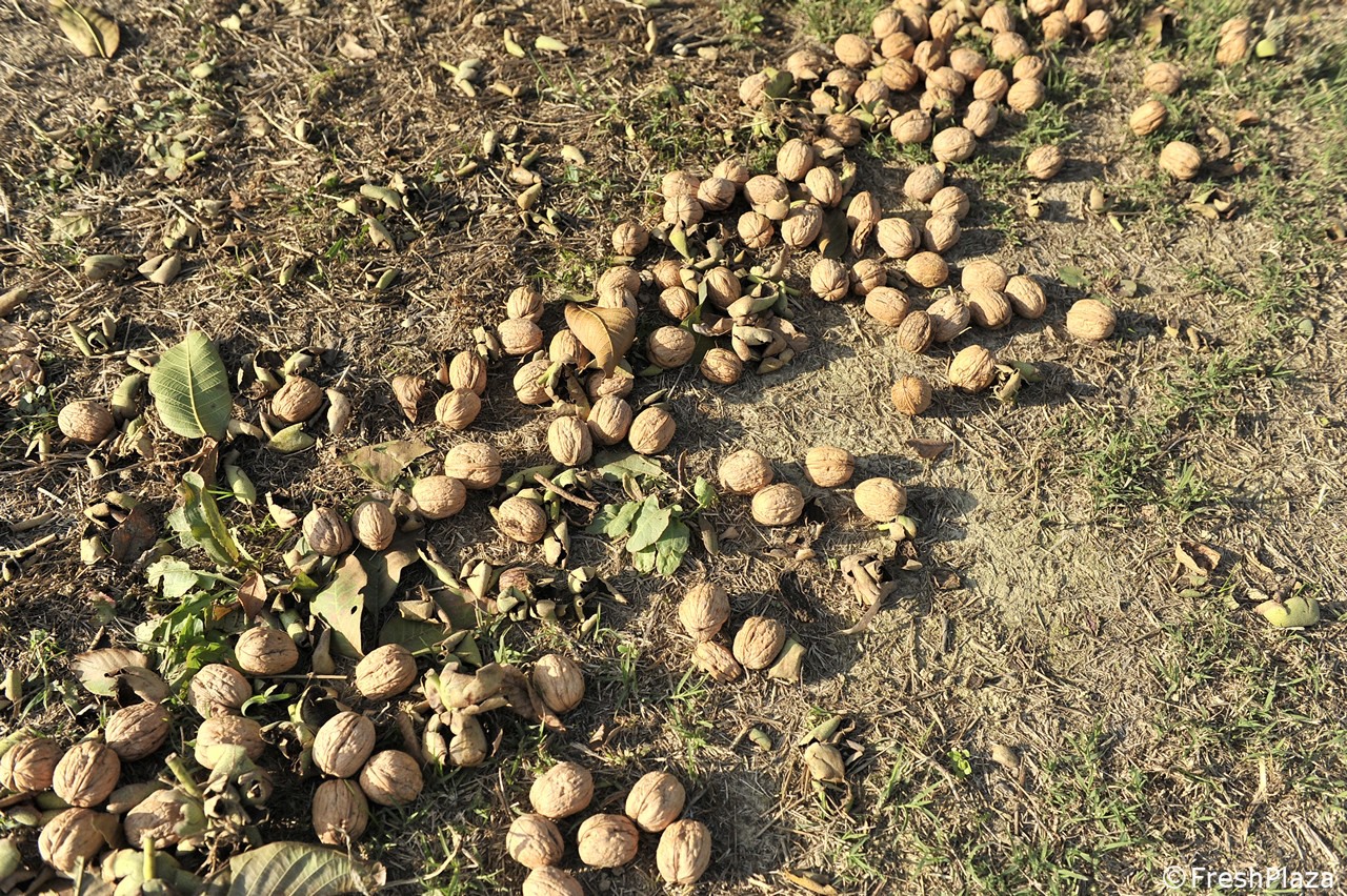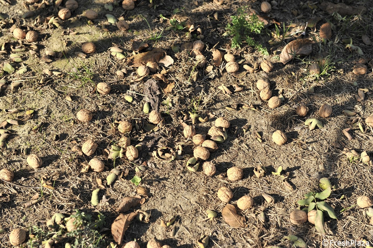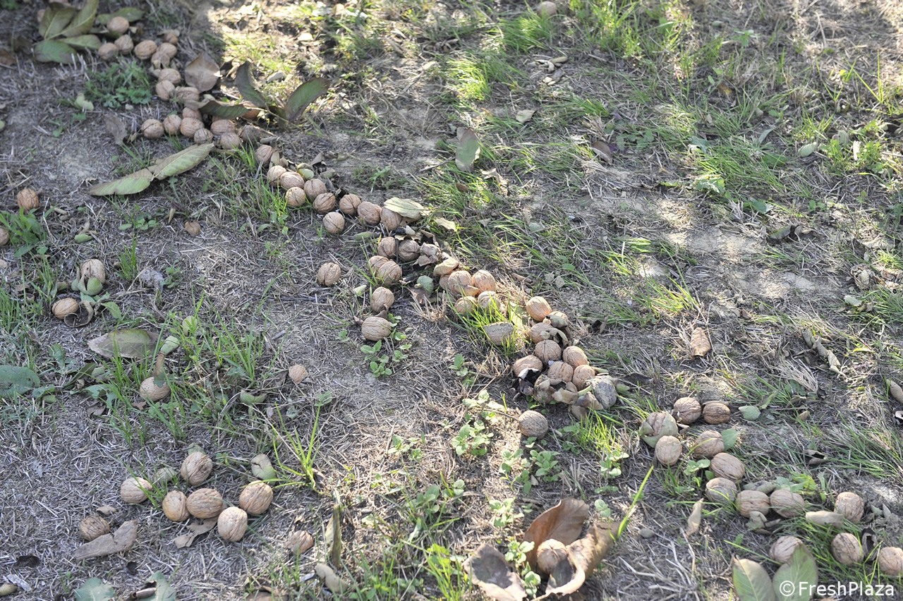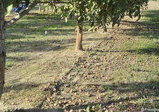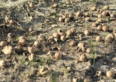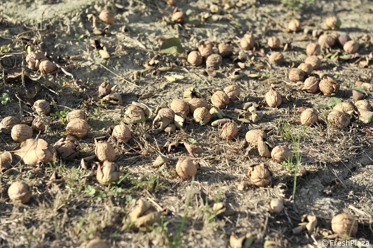 Noci pronte per essere aspirate dalla macchina raccoglitrice