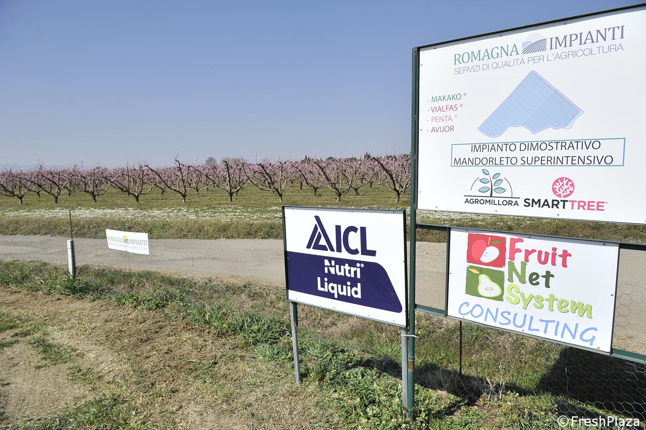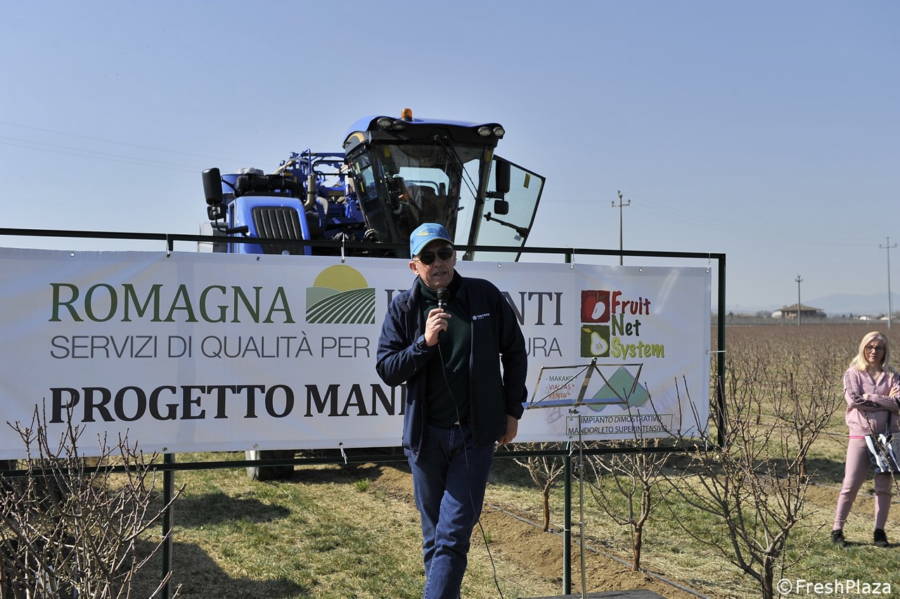 Oltre 150 fra agricoltori e tecnici sono intervenuti venerdì 25 marzo 2022 a Imola (Bologna), alla visita tecnica al mandorleto intensivo. Hanno organizzato Romagna Impianti e Fruit Net System (fotoservizio di Cristiano Riciputi)