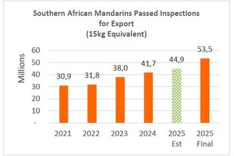 Il volume di produzione finale dei mandarini sudafricani è di 53,5 milioni di cartoni